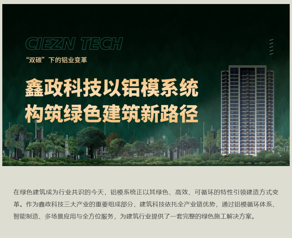 目前,鑫政鋁模市場占有率已躋身行業(yè)第一方陣。未來,鑫政將繼續(xù)以創(chuàng)新為驅(qū)動,通過鋁模系統(tǒng)的持續(xù)升級與服務優(yōu)化,在這條嶄新的綠色發(fā)展路徑上,與合作伙伴攜手共建綠色、低碳、可持續(xù)的建筑未來。